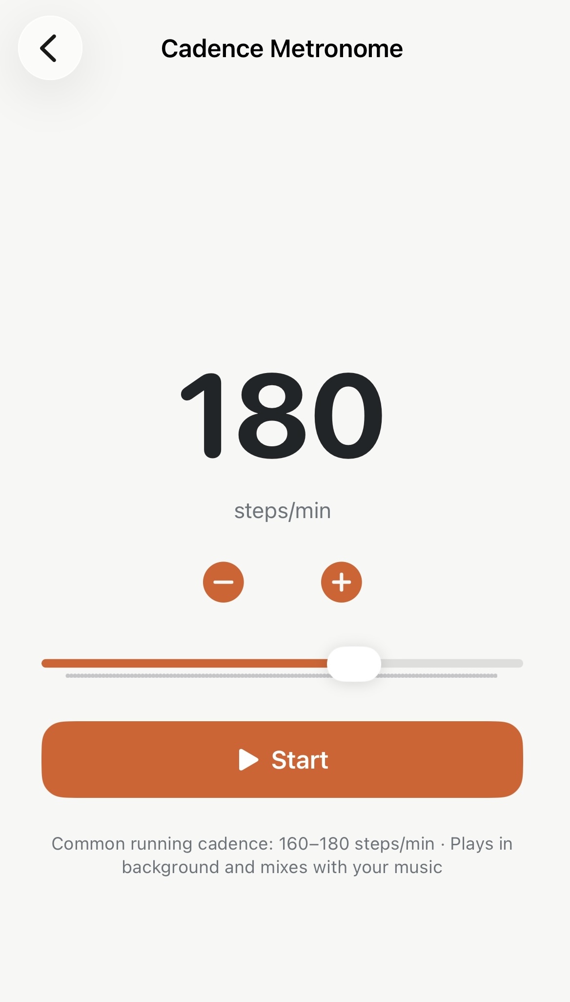 For a while, every time I wanted to run at 180 spm I’d go find an MP3. A metronome track, a playlist with the right BPM, anything I could use to keep my feet honest. It worked, but searching for a new one every time felt like a solved problem I kept re-solving.
